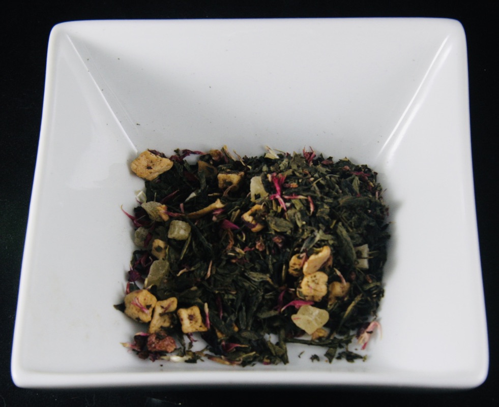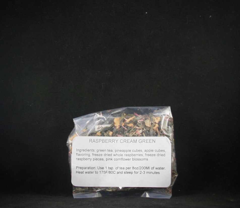 | Our Raspberry Cream tea is a mild and creamy green tea based blend featuring real whole raspberries! The fragrant blend is breathtaking to behold- it is sprinkled with pink cornflower blossom petals and large raspberry bits intermingled with pure green tea and cubed pineapple. Here’s an effortless way to incorporate more of the countless health benefits of green tea into your daily life. Once steeped, the rose-gold infusion has a mild floral aroma; at first sip, the fresh-picked raspberry taste pairs lovingly with a cream flavored sweetness and mild green tea. Raspberry Cream offers a mild balanced flavor, perfect for pairing with a fruit and cheese platter or served alongside sweets at your next afternoon tea party.